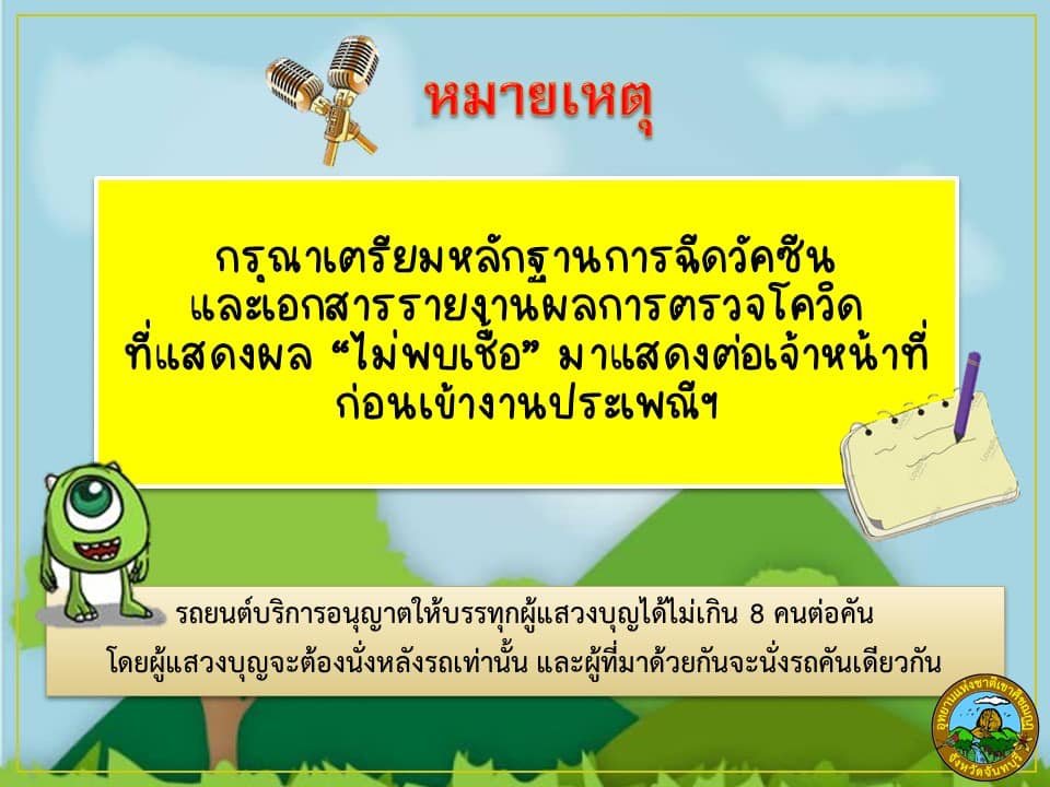 ทั้งนี้ทุกคนต้องแสดงหลักฐานได้รับวัคซีนครบ และมีเอกสารผลตรวจโควิดเป็นลบด้วยวิธี RT-PCR หรือ ATK (ไม่เกิน 72 ชั่วโมง) แสดงกับเจ้าหน้าที่ก่อนเข้างาน กรณีเคยติดเชื้อต้องมีเอกสารรับรองผลการตรวจรักษาว่าหายป่วยมาแล้วไม่เกิน 90 วัน ในกรณีไม่มีผลการตรวจเชื้อฯ ขอสงวนสิทธิ์ไม่ให้เข้างาน (ไม่มีการตรวจด้วย ATK หน้างาน)
