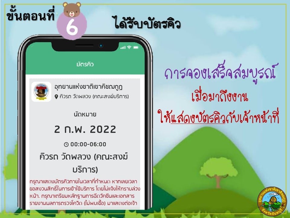 ขั้นตอนการจองขึ้นเขาคิชฌกูฏ ประจำปี 2565 วันที่ 2 ก.พ.-2 เม.ย. 2565 ผ่านแอปฯ QueQ
